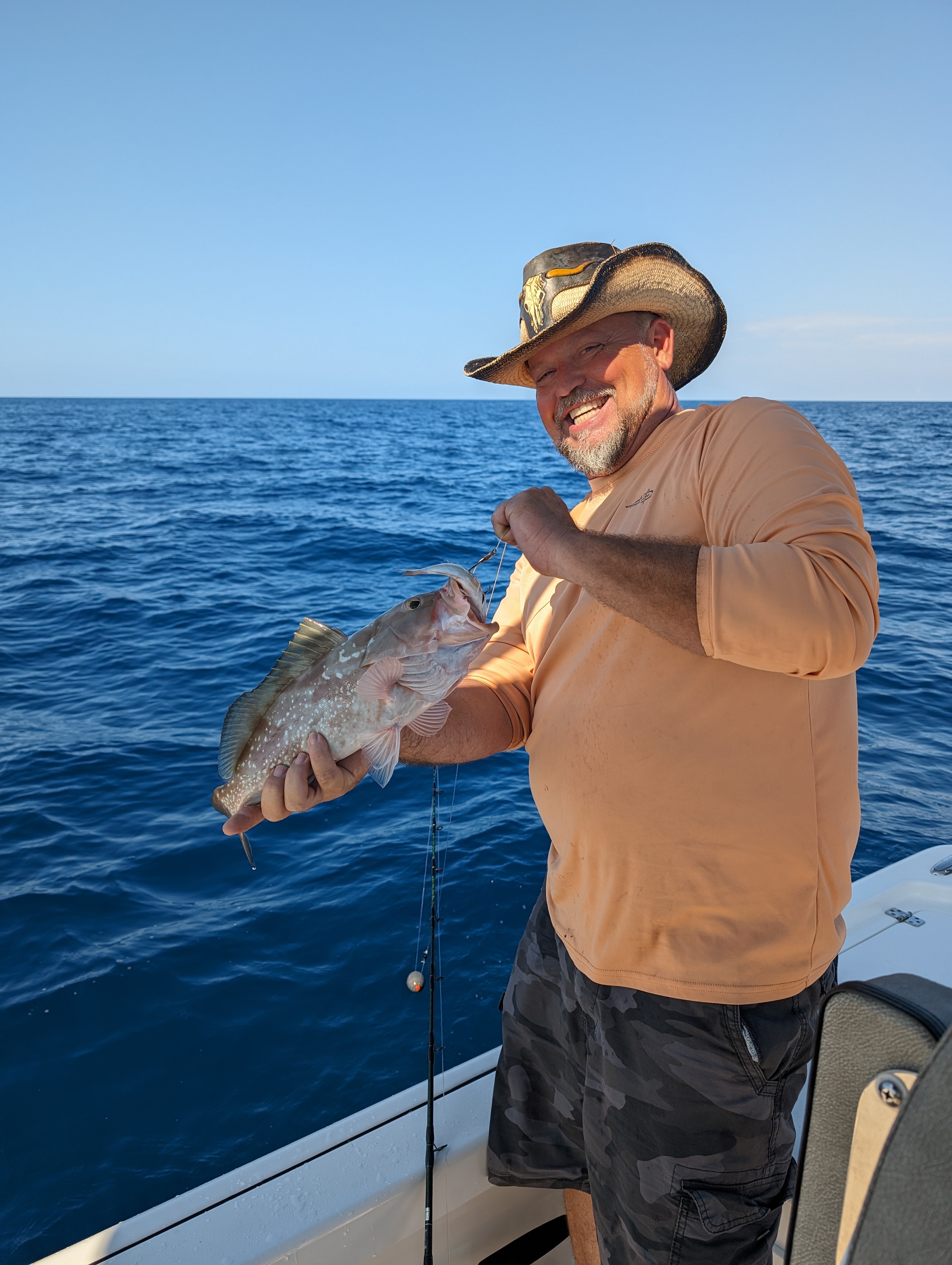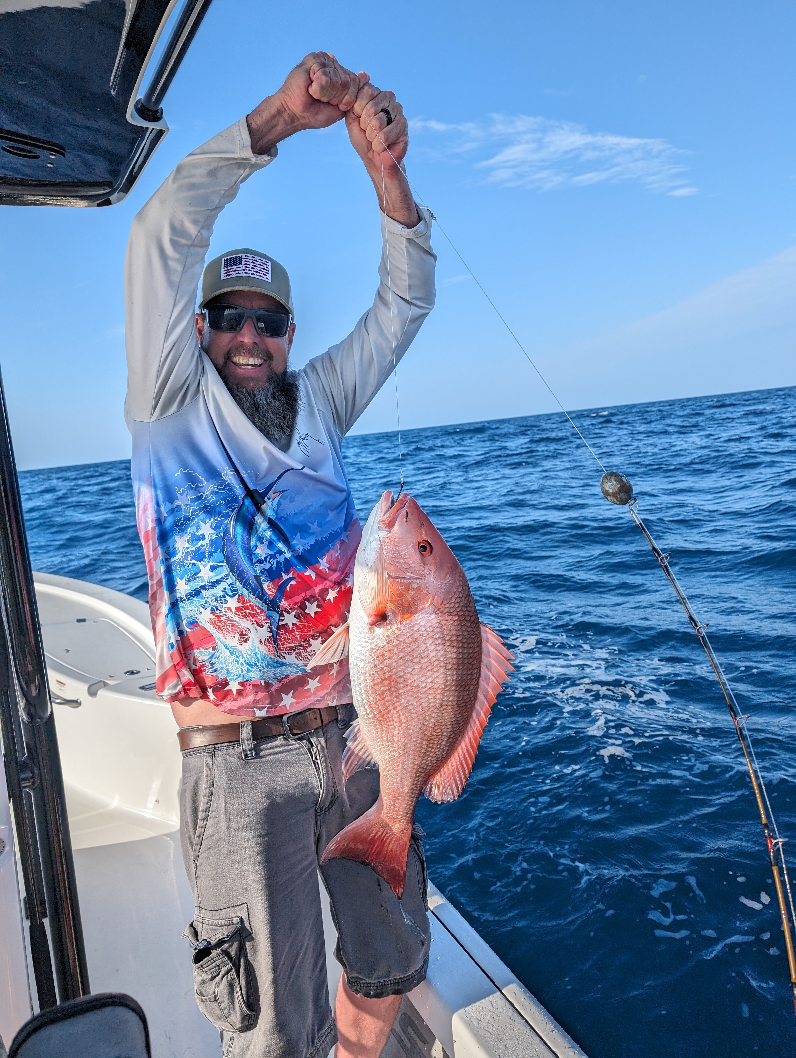 Red snapper are the prize of deeper water fishing here in Florida. These bright red fighters typically run 2-8 pounds, though we see plenty in the 10-15 pound range that'll really bend your rod. They hang out around structure in 30-100 feet - think ledges, rocks, and artificial reefs where they ambush smaller fish. Summer months are prime time when they're most active and feeding heavily. What guests love about snappers is their scrappy fight and how they taste on the table - firm, sweet meat that's hard to beat. They're smart fish though, so you need to be ready when they bite because they'll head straight for cover to break you off. Best trick I can share: use a knocker rig with fresh cut bait, drop it right to the bottom, and be ready to pull them up fast once you get a bite.