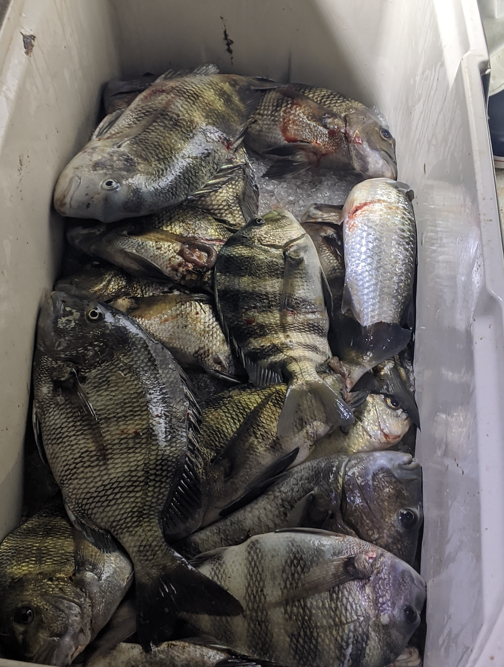 Sheepshead: With their distinctive black and white stripes, sheepshead are a prized catch. They're clever fish, often hanging around structures like pilings or oyster beds. Sheepshead have powerful jaws lined with human-like teeth, which they use to crush crustaceans. Landing one of these is always a thrill.